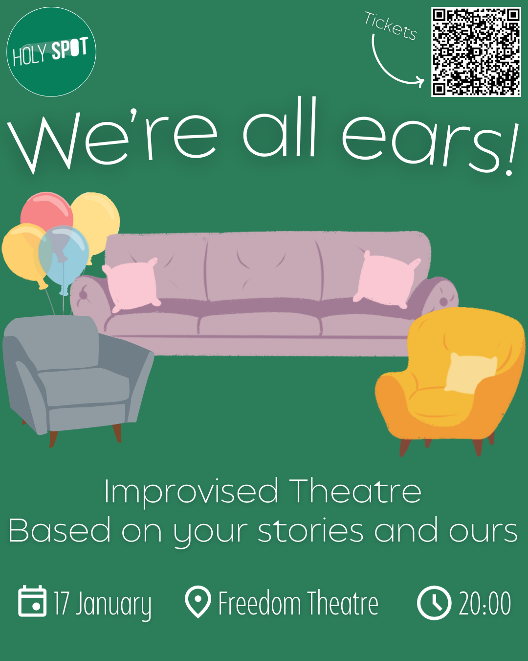 Holy Spot is an improvisational theater group formed in Eindhoven in 2018. They perform all types of improv in English, from short-form games reminiscent of De Lama’s to entire plays, all made up on the (holy) spot. They are constantly inventing new formats and ways to push the improv scene in different directions. Their shows can be funny, heartfelt, energizing, melancholic, philosophical, and adventurous, but are always an exciting surprise.